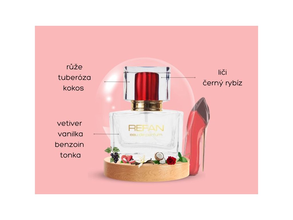 Hlava: První dojem vůně tvoří svěží a šťavnaté tóny liči a černého rybízu, které jí dodávají ovocnou jiskru.