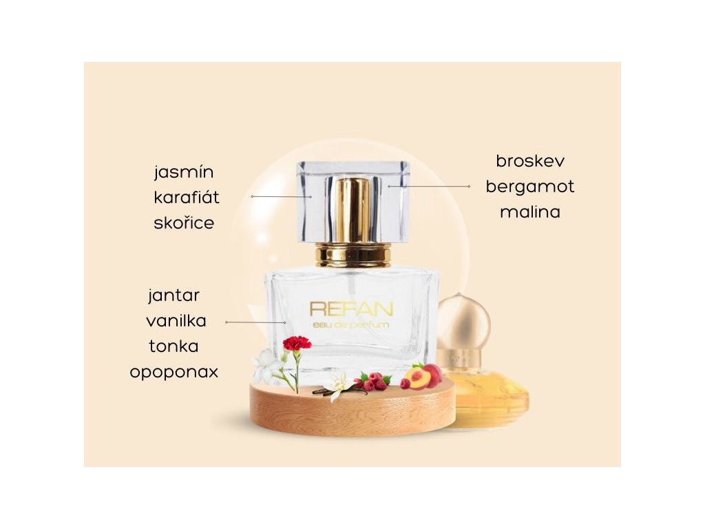 Srdce: V srdci se spojují jemný jasmín, kořenitá skořice a karafiát, čímž vzniká elegantní a teplá květinová kompozice.