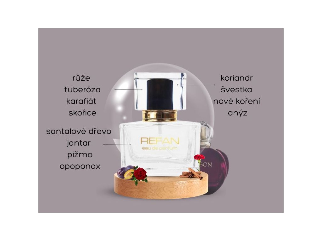 Srdce: | růže, tuberóza, karafiát, skořice |