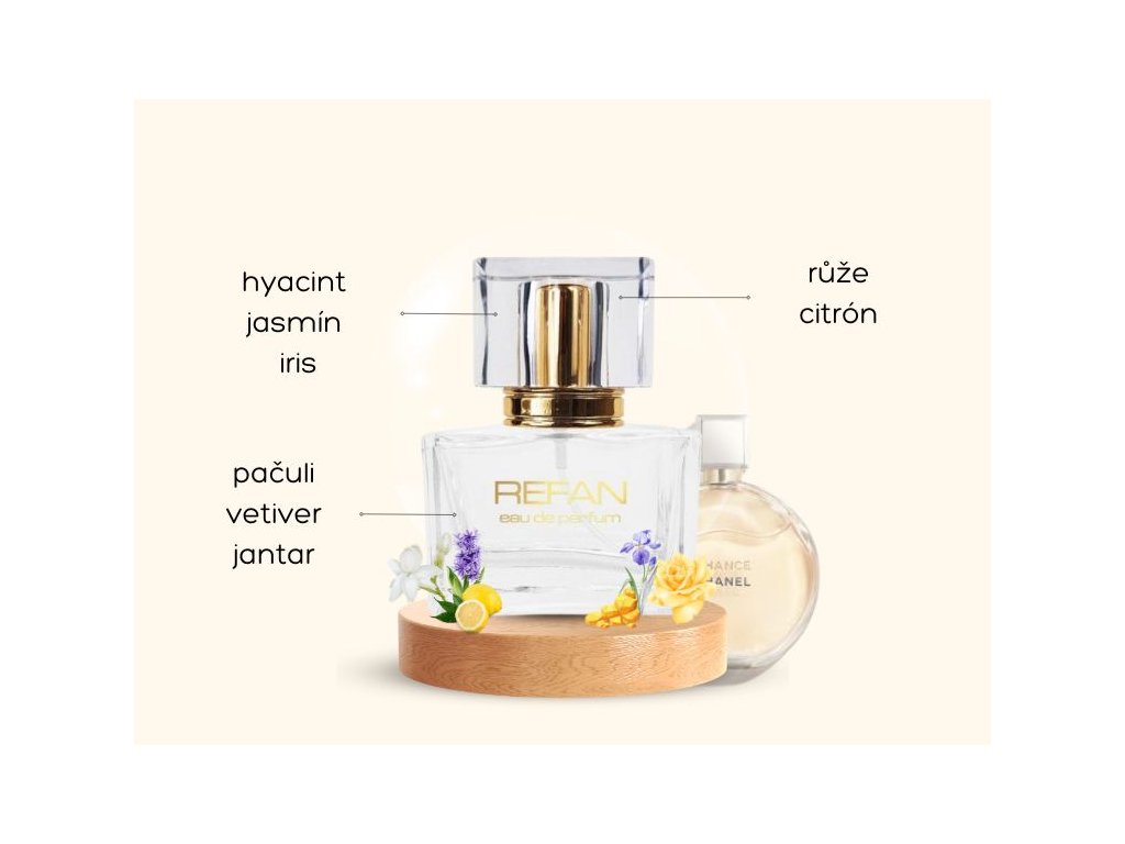 Vůně inspirovaná Chance od Chanel je elegantní dřevitá květinová kompozice, která vyzařuje sofistikovanost a ženskou jemnost. Tento parfém je ideální pro ženy, které touží po vůni plné svěžesti, ale zároveň mají rády hloubku dřevitých tónů.