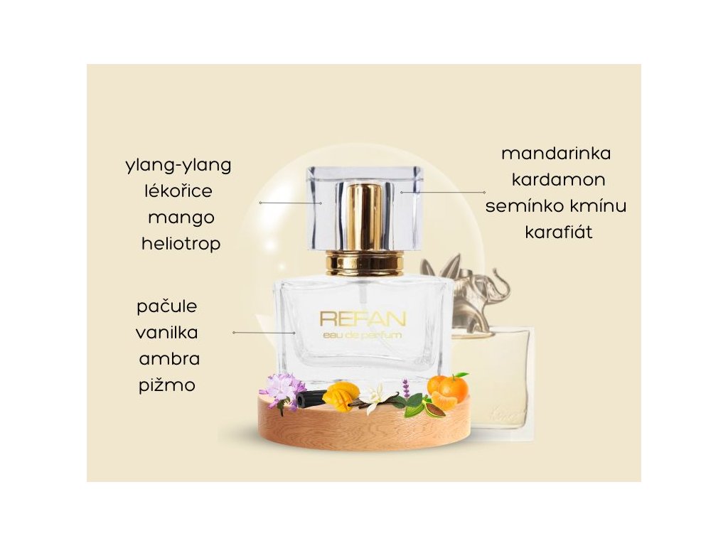 Hlava: V úvodu této vůně se skrývá mandarinka, kardamon, semínko kmínu a karafiát, které vytvářejí vzrušující první dojem. Tyto složky okamžitě probudí vaše smysly.