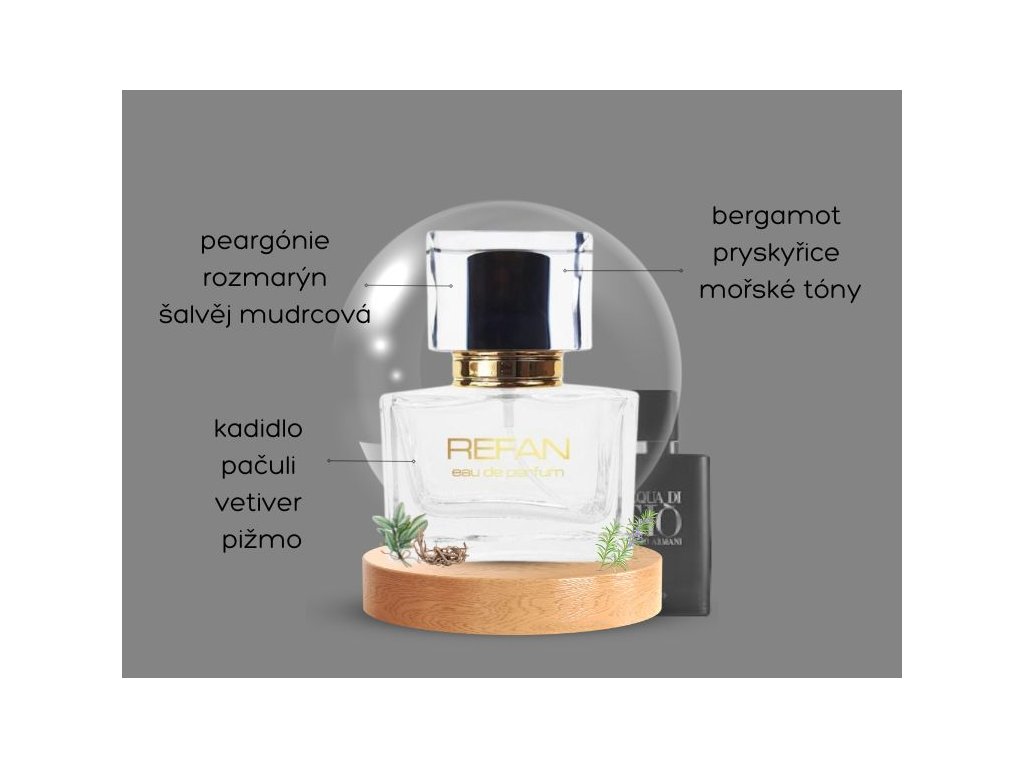 Parfém inspirovaný Acqua Di Gio Profumo od Giorgio Armani je svěží a aromatická vůně, která přináší vlnu oceánské energie a přirozené elegance. Tento parfém je ideální pro moderního muže, který touží po vůni, jež vyjadřuje sílu přírody a sofistikovanost.
