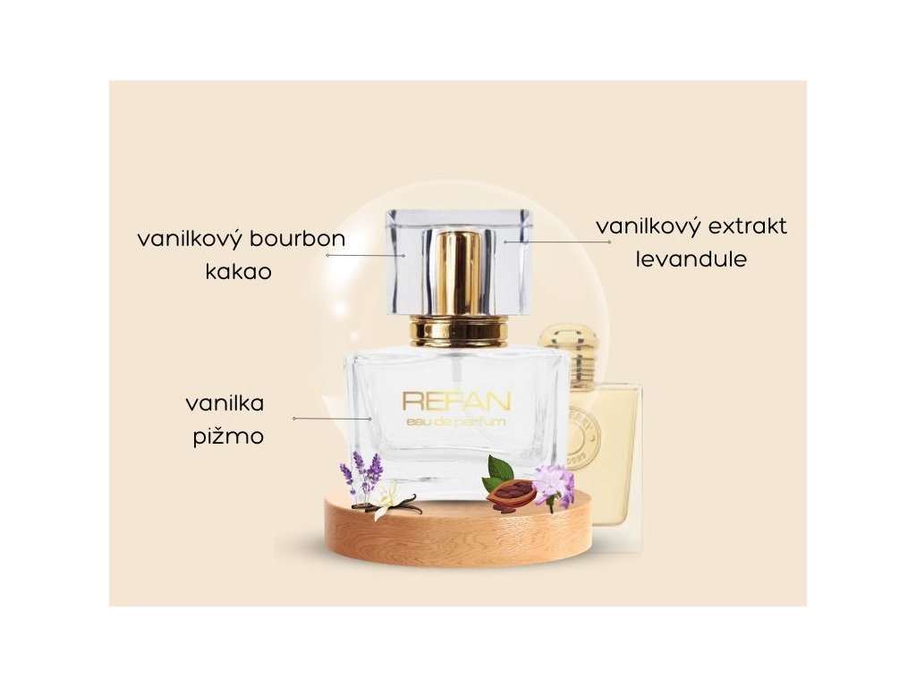 Základ: Základní tóny čisté vanilky a pižma zanechávají na pokožce dlouhotrvající, podmanivý dojem, který zvýrazňuje smyslnost a eleganci této vůně.